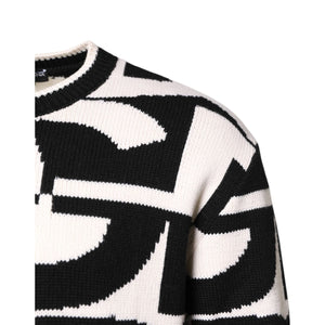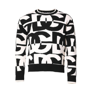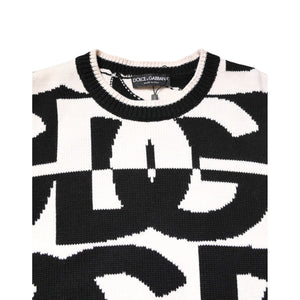 Dolce & Gabbana Black White Knit Logo Print Pullover Sweater