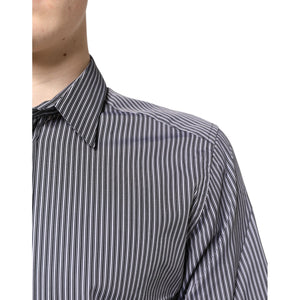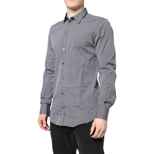 Dolce & Gabbana Black White Striped GOLD Formal Dress Shirt