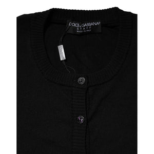 Dolce & Gabbana Black Wool Knit Crew Neck Cardigan Sweater