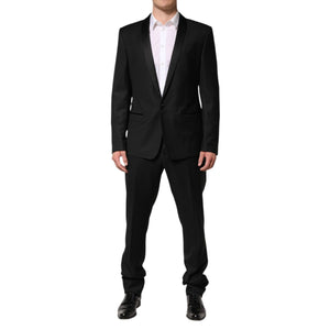 Gorgeous brand new, 100% Authentic Dolce & Gabbana black, two pieces suit is crafted from a virgin wool blend and features a jacket with a shawl lapel, long sleeves, a chest pocket, side flap pockets and button cuffs. The trousers feature a mid rise, a button and zip fly, a waistband with belt loops, side pockets, back pockets and a regular length.