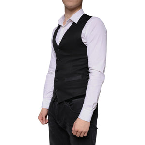 Dolce & Gabbana Black Wool Waistcoat Dress Formal Vest