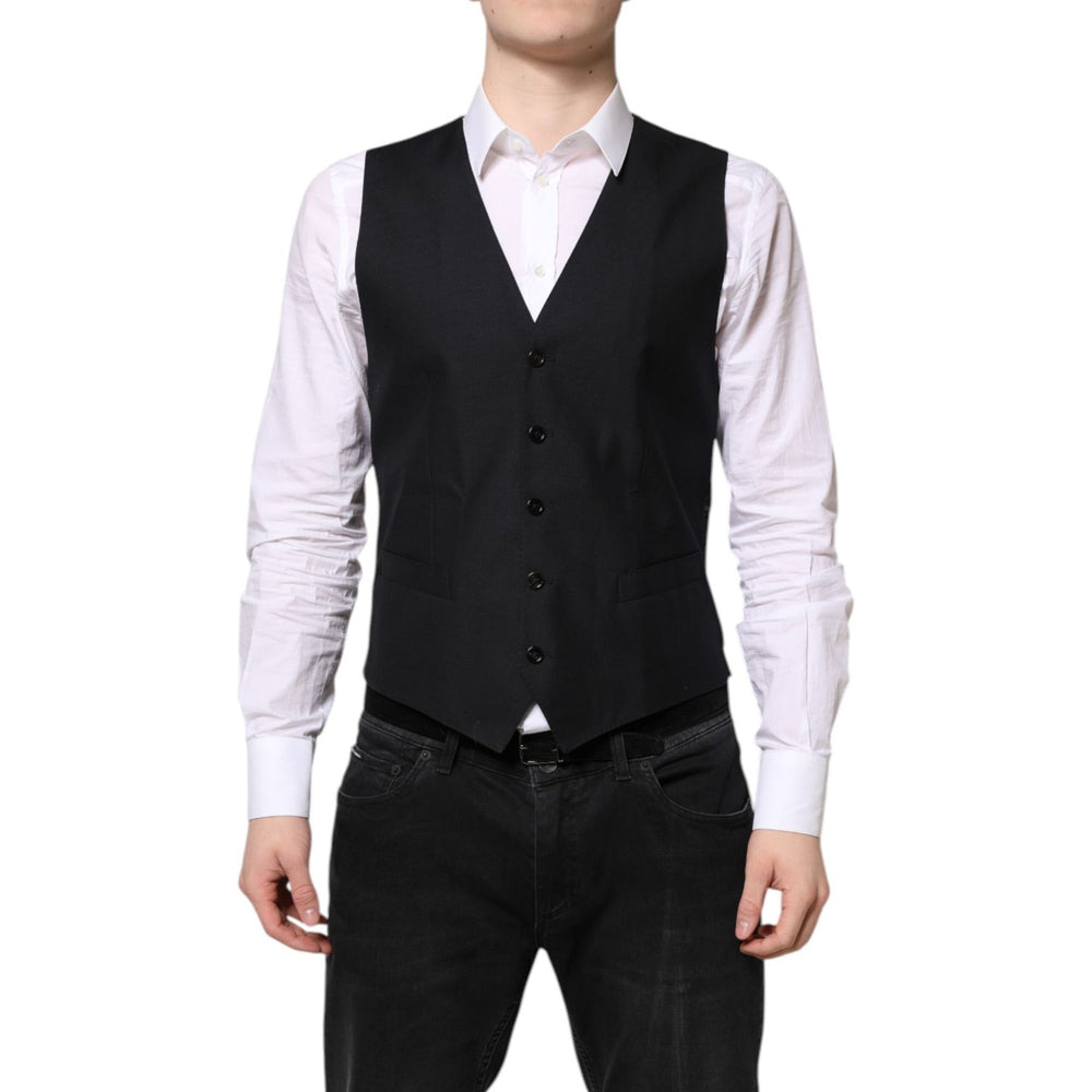Dolce & Gabbana Black Wool Waistcoat Dress Formal Vest