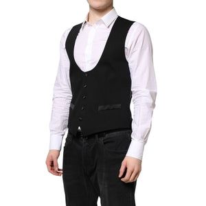 Dolce & Gabbana Black Wool Waistcoat Dress Formal Vest