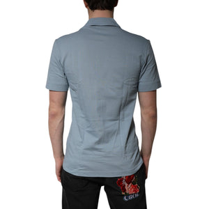 Dolce & Gabbana Blue Cotton Button Down Casual Men Polo Shirt