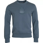 Dolce & Gabbana Blue Cotton Logo Patch Crew Neck Men Pullover Sweater