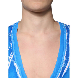 Dolce & Gabbana Blue Cotton V-neck Short Sleeves T-shirt