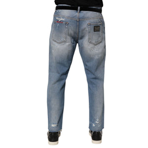 Dolce & Gabbana Blue Distressed Ripped Denim Pants Jeans