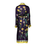 Dolce & Gabbana Blue Floral Print Silk Long Sleeves Wrap Robe