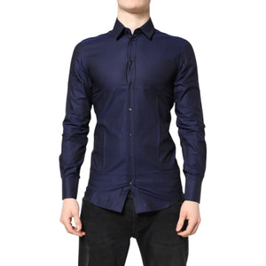 Dolce & Gabbana Blue GOLD Cotton Long Sleeves Men Dress Shirt