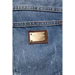 Dolce & Gabbana Blue Tattered Cotton Straight Denim Jeans