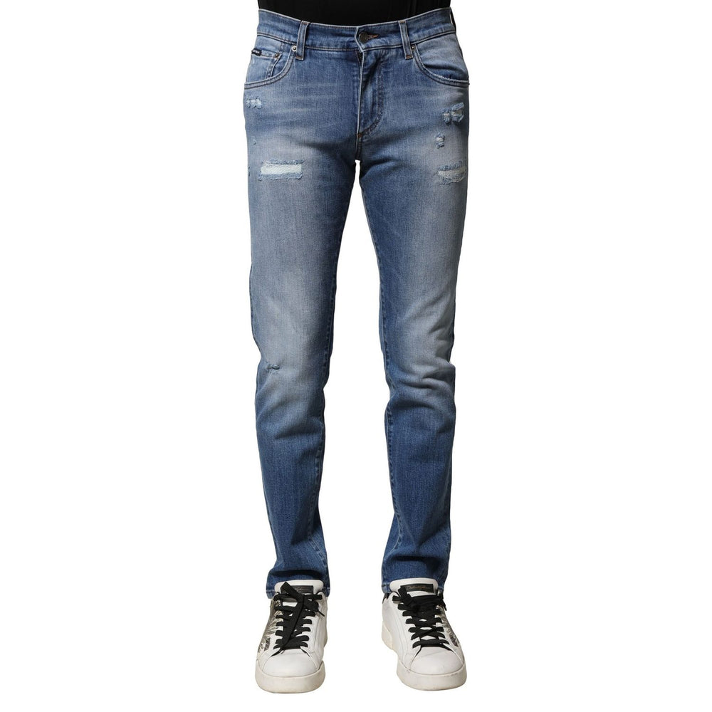 Dolce & Gabbana Blue Washed Cotton Skinny Men Denim Jeans