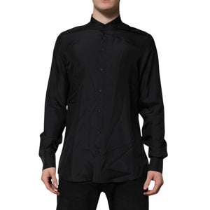 Dolce & Gabbana Dark Blue Silk MARTINI Men Formal Dress Shirt
