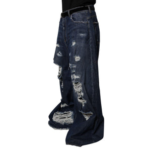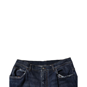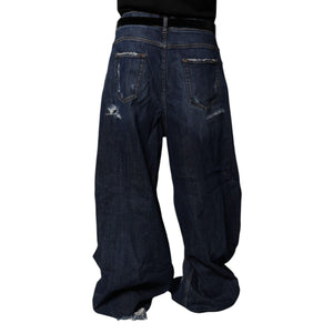 Dolce & Gabbana Dark Blue Tattered Wide Leg Men Denim Jeans
