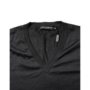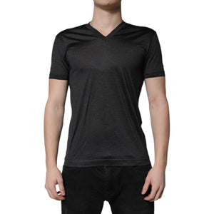 Dolce & Gabbana Dark Gray Silk V-neck Short Sleeves T-shirt