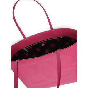 pink calf leather embossed logo to the front two rounded top handles main compartment internal zip pocket DG logo medium shopping bag Size and Fit - Width 13,78 in / 35 cm