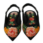 Dolce & Gabbana Black Floral Crystal Slingbacks Flats Shoes