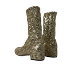 Dolce & Gabbana Gold Sequined Short Boots Stretch Shoes