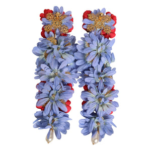 Dolce & Gabbana Gold Tone Brass Floral Crystal Clip On Dangling Earrings