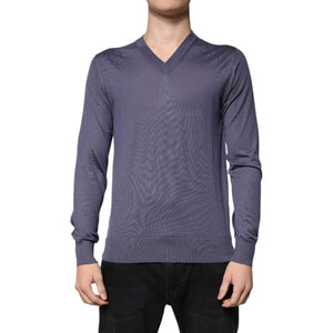 Dolce & Gabbana Gray Cashmere V-neck Men Pullover Sweater