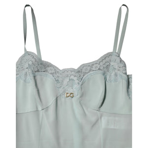 Dolce & Gabbana Light Blue Silk Lace Midi Bodycon Slip Dress