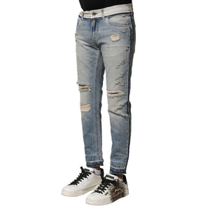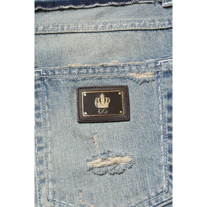 Dolce & Gabbana Light Blue Tattered Straight Men Denim Jeans