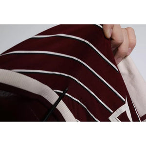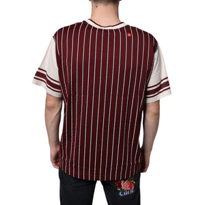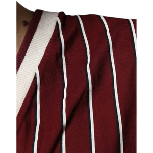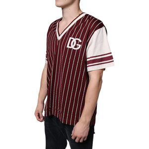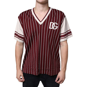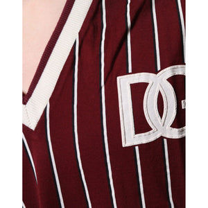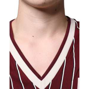 Dolce & Gabbana Maroon Stripes Cotton Logo V-neck T-shirt