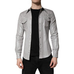 Dolce & Gabbana Metallic Gray Cotton Button Down Shirt