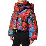 Dolce & Gabbana Multicolor Floral Hooded Puffer Coat Jacket