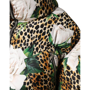 Dolce & Gabbana Multicolor Leopard Rose Puffer Quilted Jacket