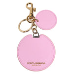 Dolce & Gabbana Pink Calf Leather Gold Metal Logo Print Keyring Keychain
