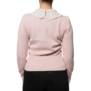 Dolce & Gabbana Pink Cashmere Collar Knitted Long Sleeves Top