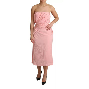 Dolce & Gabbana Pink Silk Stretch Strapless Sheath Midi Dress