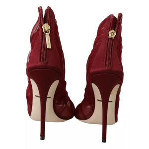 Dolce & Gabbana Red Tulle Ankle Boots Stiletto Heels Shoes