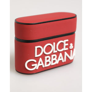 Dolce & Gabbana Red White Silicone Embossed Logo Accessory Airpods Case