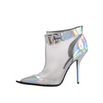 Dolce & Gabbana Silver Iridescent Pointed Short Boots Shoes