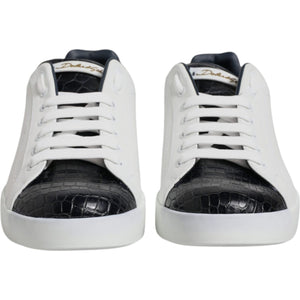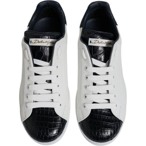 Dolce & Gabbana White Black Leather Portofino Sneaker Shoes