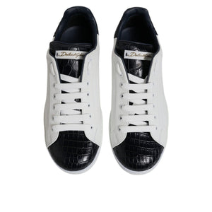 Dolce & Gabbana White Black Leather Portofino Sneaker Shoes