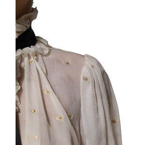 Dolce & Gabbana White Black Silk Long Sleeve Ascot Collar Top
