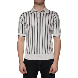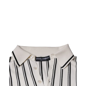 Dolce & Gabbana White Black Stripe Polo Short Sleeve T-shirt