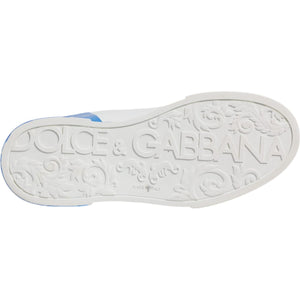 Dolce & Gabbana White Blue Leather Logo Low Top Sneakers Shoes