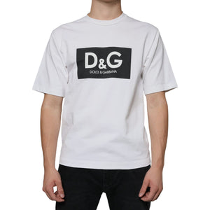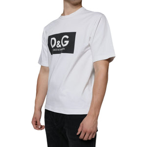 Dolce & Gabbana White Cotton DG Logo Print Casual T-shirt