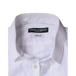 Dolce & Gabbana White Cotton Dress GOLD Formal Collared Shirt