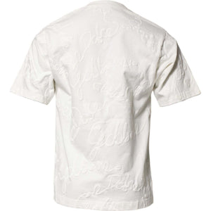 Dolce & Gabbana White Cotton Logo Embossed Crew Neck T-shirt