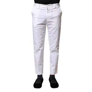 Dolce & Gabbana White Cotton Straight Logo Men Pants