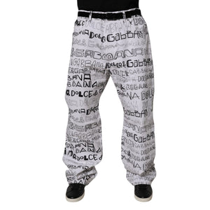 Dolce & Gabbana White Logo Print Straight Men Denim Jeans
