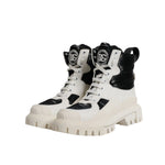 Dolce & Gabbana White Padded Mid Calf Lace Up Boots Shoes