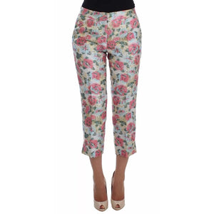 Dolce & Gabbana White Pink Floral Brocade Pants