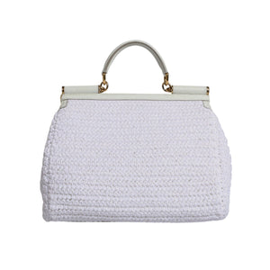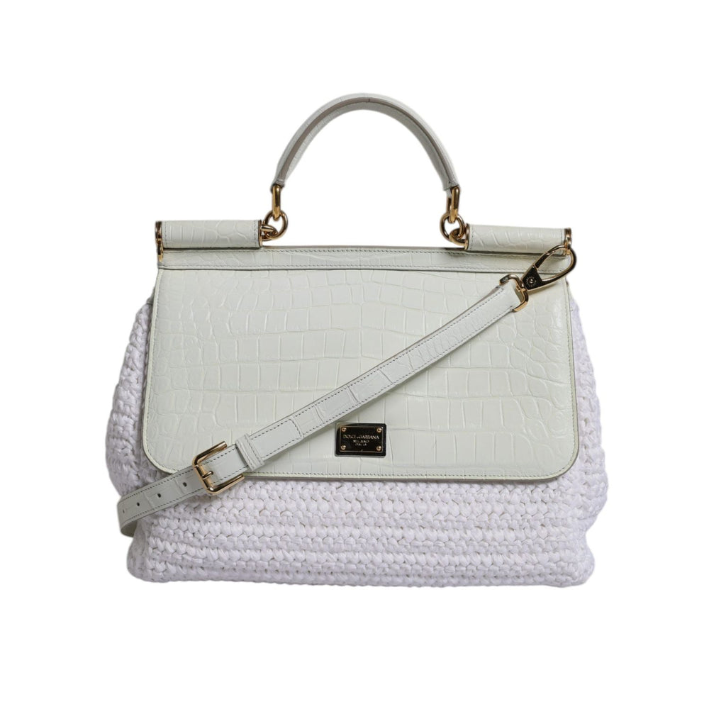 Dolce & Gabbana White Rafia Leather Top Handle Crossbody Bag