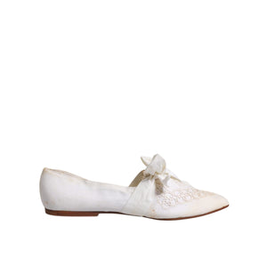Dolce & Gabbana White Ribbon Fabric Ballerina Flats Shoes