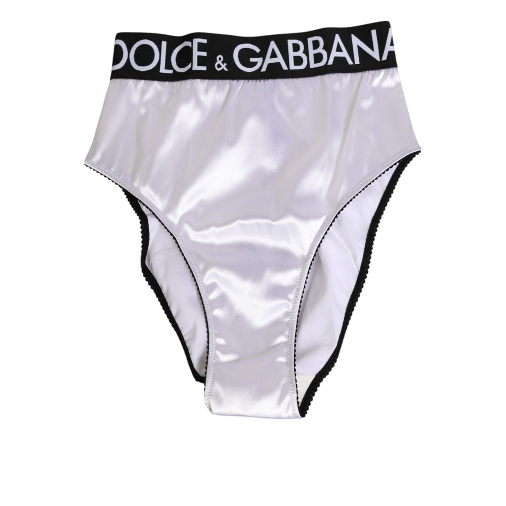 Dolce & Gabbana White Satin High-Waist Black Logo Women Underwear